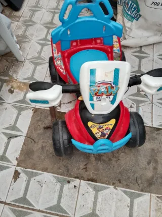 Cochecito de juguete con diseño de Paw Patrol, ideal para los más pequeños. - Colores rojo, azul y negro. - Detalles de los personajes de Paw Patrol. - Ruedas negras.