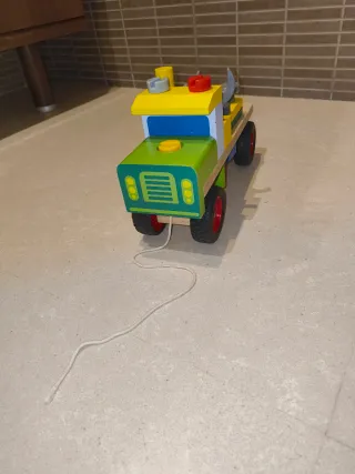 Divertido camión de juguete de madera, perfecto para que los más pequeños desarrollen su creatividad. - Fabricado en madera. - Diseño colorido con piezas para montar y desmontar. - Con herramientas