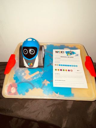 Robot Woki interactivo, ideal para aprender programación de forma divertida. Incluye manual y piezas. - Robot de color azul y blanco. - Incluye manual de juego. - Contiene piezas de puzzle para crear circuitos. - Diseño con ruedas y ojos grandes.
