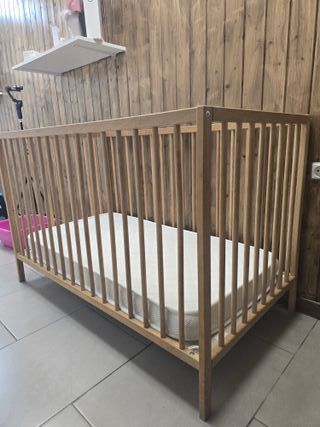 Se vende cuna con colchón incluido. Ideal para el descanso del bebé. - Cuna de madera. - Colchón transpirable.