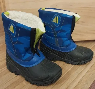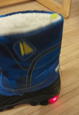 Botas de nieve para niños talla 26. Para mantener los pies calientes y secos en la nieve. - Luces al caminar - Diseño en color azul con detalles en verde lima. - Cierre de cremallera frontal. - Interior forrado de pelo sintético. - Suela de goma antideslizante.