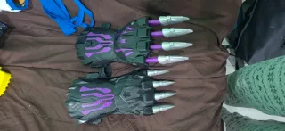 Set de garras inspiradas en Black Panther, con detalles en morado y plateado. - Diseño con garras retráctiles. - Incorpora efectos de luz y sonido.