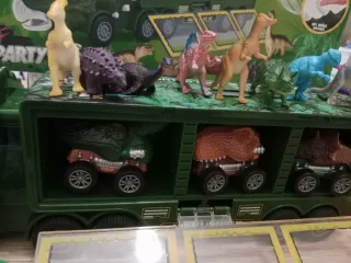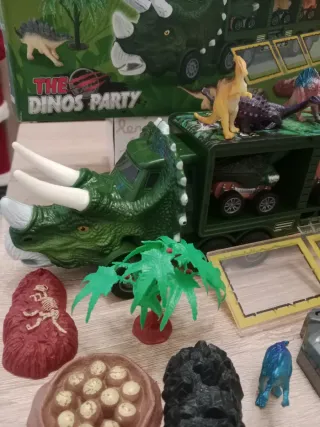 Set de juego The Dinos Party con camión y figuras de dinosaurios. Está casi nuevo,apenas usado lo vendo en su caja original . (Casi nuevo pero se le rompió una pestaña del tobogán de plástico). Pero eso no creo que es un problema porque lo de más está impecable como se ve en la foto .