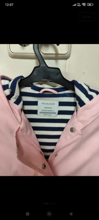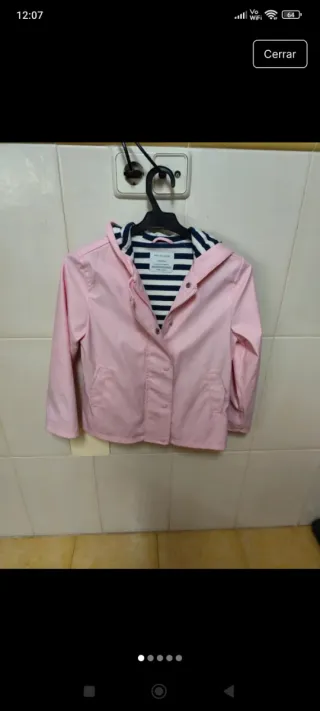 Chubasquero para niña con forro de rayas. - Capucha. - Cierre de botones. - Bolsillos laterales.