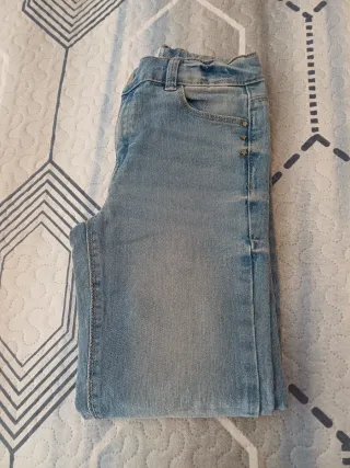 Vaqueros de niña en talla 9 años. Son cómodos y versátiles. - Cintura elástica. - Diseño clásico de cinco bolsillos. - Detalle de estrellas en los bolsillos laterales.
