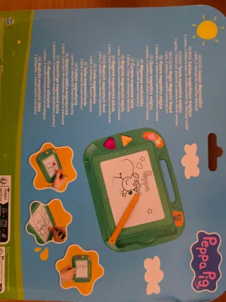 Pizarra magnética de Peppa Pig para dibujar y borrar. - Incluye lápiz magnético. - Diseño colorido con personajes de Peppa Pig.