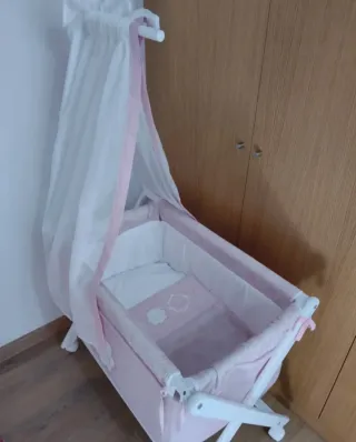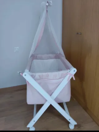 Minicuna de la marca Naf Naf en color rosa y blanco. - Incluye dosel. - Se entrega desmontada. - 90x50 aprox