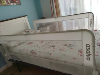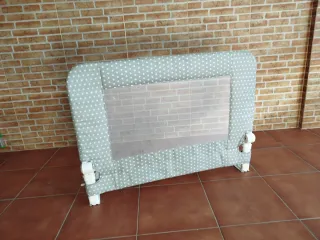 3 barandillas protectoras para cama infantil. Se venden por separado a 12€ la unidad, 30 € las 3. Dos de ellas son más largas y abatibles. - Tejido acolchado. - Malla transpirable en el centro. - Mecanismo de sujeción blanco.
