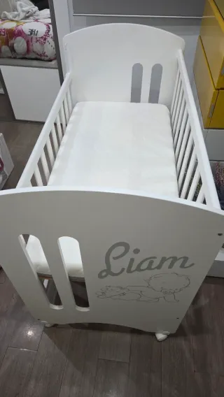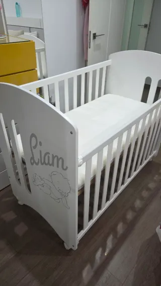 Cuna de bebé en color blanco, lista para usar. Incluye colchón. - Diseño moderno y seguro. - Ideal para habitaciones infantiles.