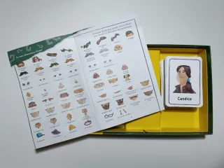 Juego de mesa educativo en francés de cartas muy útil, que se basa en la observación y el uso de 100 verbos ilustrados permitiendo a los estudiantes aprender y practicar, de forma agradable y divertida, la gramática y la sintaxis de la lengua francesa a través de la conjugación de 100 verbos de uso frecuente y la formación de oraciones en diferentes situaciones.
