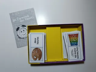 Juego didáctico de cartas en francés para utilizar con los alumnos en clase o en familia muy útil y divertido basado en preguntas y respuestas para repasar la descripción física e identificar personajes pertenecientes a diferentes grupos de edad. En perfecto estado.