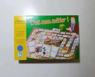 Juego educativo en francés basado en la asociación de ilustraciones, palabras y frases que permite aprender y aplicar, de forma agradable y emocionante, el vocabulario y las estructuras lingüísticas de la lengua francesa, a través de la asociación de los nombres de oficios y profesiones con sus respectivas actividades.