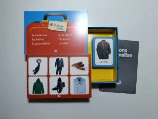 Divertido juego educativo en francés de cartas en el que los jugadores deben encontrar la ropa y los accesorios de su lista para preparar la maleta. También se puede jugar como bingo. Con ello, se facilita el aprendizaje, el refuerzo y el uso correcto de las estructuras lingüísticas y el vocabulario relacionado con la ropa entre el alumnado, presentándolo en un contexto atractivo, como el de los viajes.
