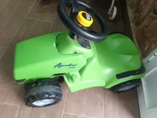 Tractor de juguete con pedales, ideal para que los más pequeños se diviertan. - Color verde con asiento y detalles amarillos. - Ruedas grandes de goma. - Volante para dirigir.