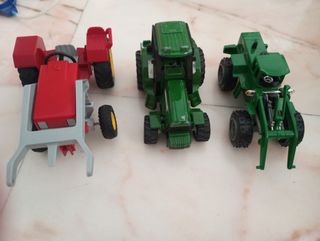 Conjunto de tractores John Deere de Theo Klein con varios accesorios. - Incluye tres tractores - Un Remolque - Un Camión grúa Todos los detalles que aparecen en las imágenes