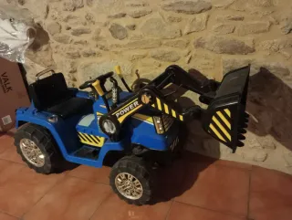Divertido tractor infantil de color azul, perfecto para que los más pequeños disfruten. Batería estropeada,hay que cambiarla. - Pala frontal. - Volante. - Ruedas grandes. No se hace envio