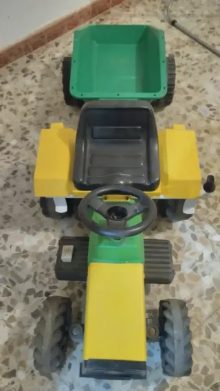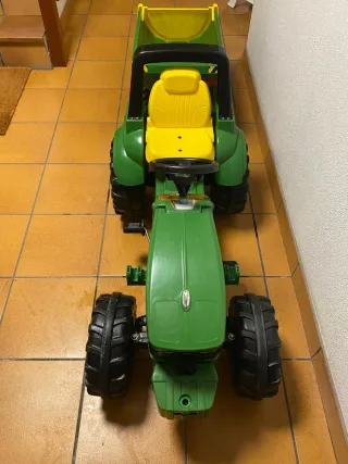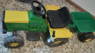 Tractor John Deere a pedales en perfecto estado, ideal para que los más pequeños disfruten al aire libre. Incluye un remolque. - Diseño clásico John Deere. - Construcción robusta para horas de juego.