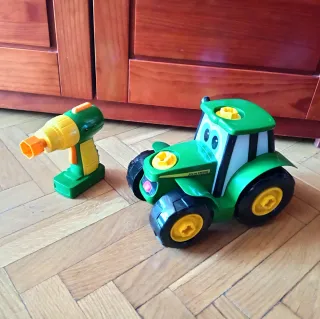 Construye el tractor desmontable Johnny: set para montar el propio tractor John Deere Las piezas son grandes, ideales para que las manipulen los niños pequeños El taladro eléctrico permite montar y desmontar fácilmente. Mi hijo lo ha usado bastante, pero está bien, se puede seguir usando. Estado muy bueno, como en la foto. Taladro funciona perfectamente