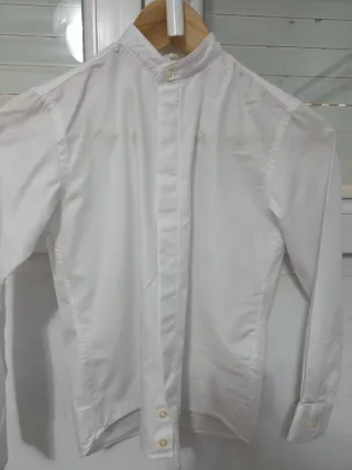 Conjunto de traje para comunión, tres piezas. - Chaqueta verde azul con dos botones. - Camisa blanca con cuello mao, perfectos los cuellos y mangas - Pantalón beige. Todo en perfecto estado, solo puesto el dia de la comunión. Precio original 275 euros