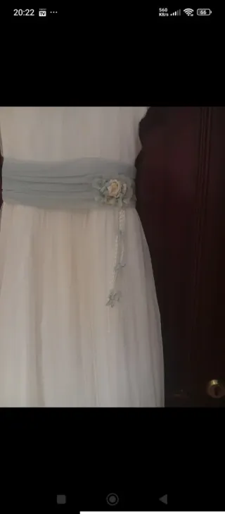Traje de comunión blanco, talla 8/9 años. Ideal para una ocasión especial. - Vestido largo con cancán. las flores eran naturales y no se conservan. - Mangas cortas con encaje. - Falda voluminosa de tul. Tiene un enganche detrás pero se puede disimular.