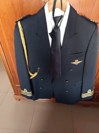 Traje de chaqueta azul marino, ideal para eventos especiales. - Chaqueta con botones dorados. - Escudo bordado en dorado en la solapa. - Puños con galones dorados. Nuevo sin etiquetas como se aprecia en la foto. A estrenar. Perfecto estado. Adjunto medidas. Talla 11. 25€ precio final Envío rápido Sólo hago envíos