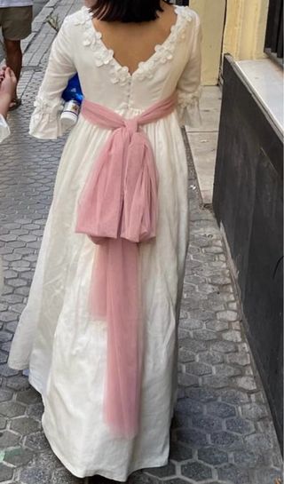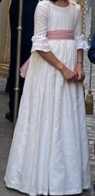 Tal y como se ve en fotos!!!! regalo flor para llevar de la mano y limosnera para colgar de la muñeca o vestido. SOLAMENTE se vende en VALLADOLID, también dispongo de trajes de comunión para niños, muy baratos!!!!! Mira mi perfil MEDIDAS: Largo VESTIDO : 110 cm Contorno PECHO: 33 cm Cintura: 56cm Largo MANGA: 28cm LIMOSNERA: 16 cm alta.