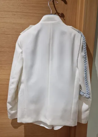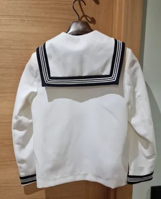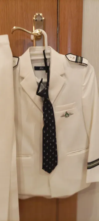 En perfecto estado ,americana almirante blanco (52 cm largo), pantalón azul marino(75cm largo) y camisa. Talla 7/8