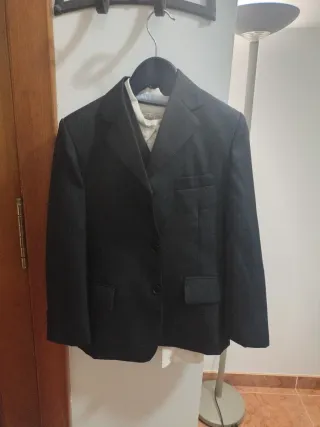 Como nuevo, traje almirante con bonitos detalles en los botones talla 11 ( mi hijo en prendas normales estaba en talla 12)marca cadete todo completo camisa chaleco corbata pantalón casaca y zapatos número 36 de piel muy cómodos solo ese día de uso todo 180€