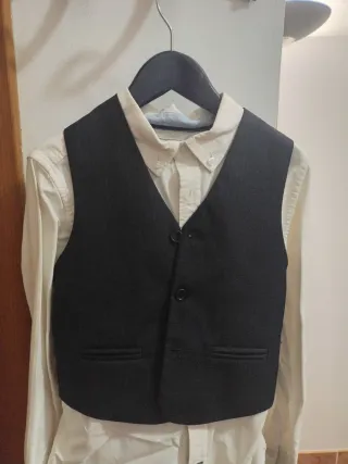 Traje comunión niño,incluye chaleco, corbata,americana y pantalon. Costo 395€, se ha usado un día. limpio de tintorería Se regala la camisa Manga 45 cm, largo chaqueta 56 cm. Pantalón 78 largo y 68 cm ancho. El pantalón tiene 8 cm metidos que se pueden sacar.