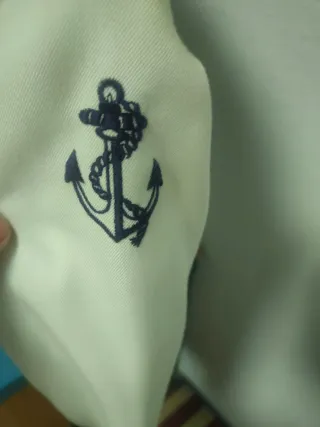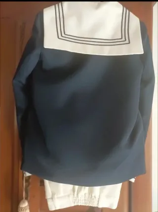Traje de marinero en color blanco y azul marino, talla 11. - Cuello marinero con detalles de rayas. - Lazada azul marino. - Cordón decorativo blanco. - Insignia de ancla bordada en la manga. - Si necesitas otra talla de pantalón, la cambio sin problema (disponible desde la T-8 hasta la T-12) - Bajo del pantalón sin cojer, porque está nuevo a estrenar. Envíos en el mismo día! Visita mi perfil para ver más modelos, tallas y artículos de Primera Comunión y Ceremonia. Consulta sin compromiso :) Ajusto el precio si te llevas varios artículos al mismo tiempo. Al llevar el traje, se puede añadir: +5€ funda de tela +4 cint sint 1m
