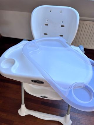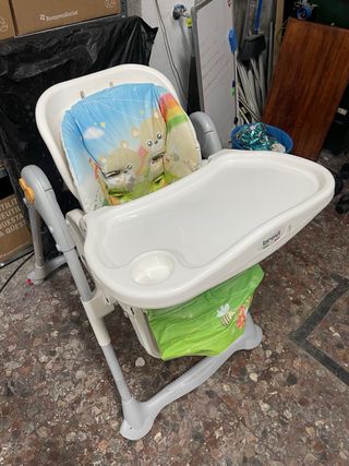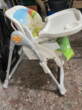 Trona de comer para bebé con un diseño alegre y funcional. - Asiento acolchado y lavable. - Bandeja extraíble. - Plegable para fácil almacenamiento. - Estructura resistente y segura. - Tiene un pequeño roto el plástico en la foto se aprecia por lo demás está perfecta - Se reclina el asiento hacia atrás por si se duerme - Se sube y baja de altura