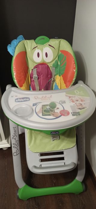 TRONA DESDE EL NACIMIENTO: Gracias al respaldo reclinable en 4 posiciones y al reposapiernas regulable, podrás usar esta trona como hamaca durante los primeros meses y cambiar a trona con el destete. ANCHURA AJUSTABLE: Polly 2 Start de Chicco es la única trona con respaldo regulable en anchura hasta 8 cm, para abrazar y adaptarse al crecimiento del bebé. ADAPTABLE: Fácil de regularla a cualquier mesa gracias a los 8 niveles de ajustes diferentes y a sus 4 ruedas para desplazarla. PLEGABLE Y COMPACTA: Una vez cerrado, se sostiene sola y ocupa poco espacio. tiene un defecto que se puede ver en la ultima foto pero no perjudica a su funcionamiento