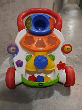 Andador musical Chicco en buen estado. Ideal para que el bebé dé sus primeros pasos de forma segura y divertida. - Diseño de coche colorido y atractivo. - Incluye diferentes actividades interactivas. - Ruedas resistentes y fáciles de manejar. - Asa de agarre cómoda para el bebé.