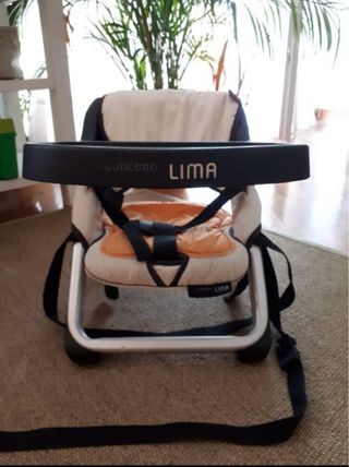 Vendo sillita portátil / trona de viaje Concord Lima, ideal para comidas fuera de casa, viajes o casas de familiares. ✔️ Ligera y plegable ✔️ Incluye bandeja extraíble con portavasos ✔️ Arnés de seguridad ✔️ Cómoda y estable ✔️ Incluye funda original Concord para transporte Estado bueno, con señales normales de uso (ver fotos).