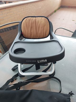 Trona bebé Lima Concord, con bolsa de viaje y manual de uso. En buen estado. En la foto aparece desmontada para viaje, la monto en persona para explicar como se hace