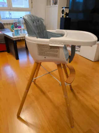 - Trona evolutiva, adaptable a diferentes edades. - Incluye bandeja extraíble. - Estructura de madera y plástico resistente. - Incluyo un protector que se me olvido ponerlo en las primeras fotos. La entrego desmontada en mano en el barrio de Gracia.