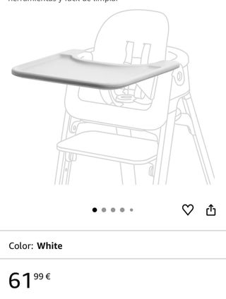 Bandeja y adaptador originales Stokke (Blanco) Se vende el kit oficial de bandeja y adaptador en color blanco. Son piezas originales de la marca, lo que garantiza un ajuste perfecto y la máxima seguridad para tu silla. Están en muy buen estado y listas para una segunda vida. Calidad Stokke: Plástico de alta resistencia, libre de BPA y diseñado específicamente para sus modelos. Alimentación sin estrés: Superficie amplia e ideal para que el bebé empiece con la alimentación complementaria. Limpieza sencilla: Material hidrófugo que se limpia fácilmente con un paño o bajo el grifo.