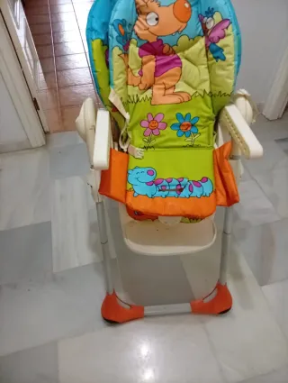 Trona Chicco Polly Easy, para niños de 0 a 3 años. Amplia, compacta y sencilla. Con asiento reclinable y 4 ruedas. Buen estado. Lo único que tiene un poco estropeado es que en la zona del respaldo donde se ponen los arneses se ha rasgado un poco el plástico (se aprecia el detalle en una de las fotos).