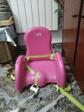 Trona infantil de color rosa, ideal para acoplar a una silla de comedor. - Diseño ergonómico. - Incluye cinturones de seguridad. - Material de plástico resistente.