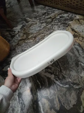 Trona de plástico blanco para bebés. Es cómoda y fácil de limpiar. - Bandeja integrada. - Patas estables.
