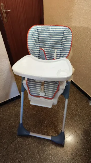 Trona de la marca Plastimyr en buen estado - Material: Plástico y polipiel. - Bandeja extraíble. - Reposapiés. - Plegable para fácil almacenamiento.