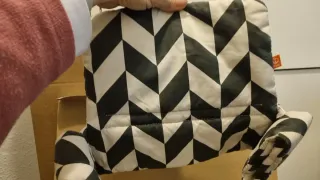 Cojín para trona Tripp Trapp de Stokke Marca: Stokke. Referencia: 619009, en color blanco y negro, encerado. El cojín para la Trona Tripp Trapp se puede utilizar directamente con la silla evolutiva como con el con el accesorio Baby Set. Cojín acolchado de fácil instalación. Se adapta a la silla sola o con el Tripp Trapp Baby Set. Certificada Oeko-Tex Standard 100. Tejido 100% algodón y relleno 100% poliéster. Práctica tela repelente al agua (Solamente para los modelo Siluetas). Precio nuevo: 49€