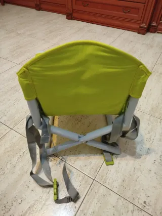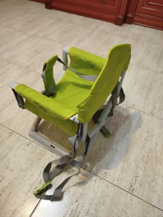 Trona de viaje con muy poco uso, ideal para usar en alojamientos Airbnb que no disponen de trona o restaurantes. La espuma del asiento, la tela y todos los agarres están en perfecto estado. Su instalación es muy sencilla y es fácil de limpiar.