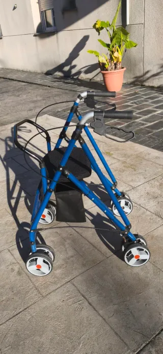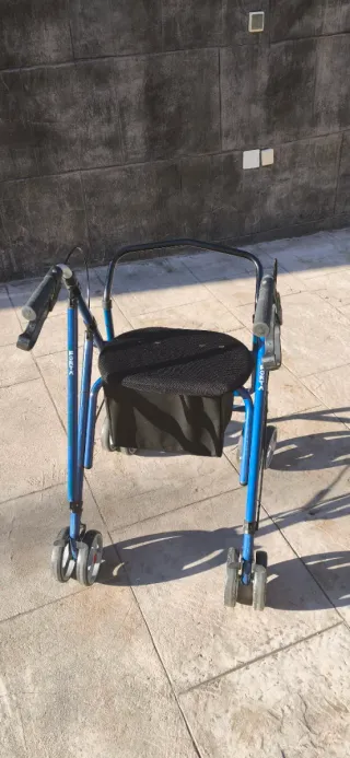 Andador plegable diseñado para personas mayores. Cuenta con un asiento integrado para descansar. Tiene cesta para guardar lo que se necesite debajo del asiento - Estructura metálica. - Asiento de tela negra. - Ruedas grandes para facilitar el desplazamiento, con mucha estabilidad. Esta impecable, solo utilizado durante 15 días.