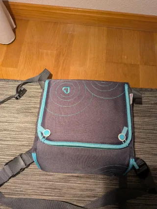 Bolso de viaje para trona Jané Avant, ideal para llevar todo lo necesario. - Color azul claro. - Compartimentos interiores para organización. - Correa ajustable con cierre de clip.
