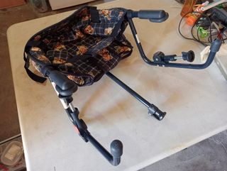 Trona de viaje semi nueva se engancha a la mesa y permite al niño estar en la mesa,se plega en su funda