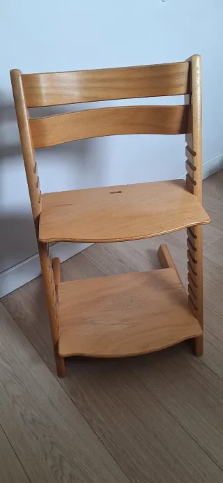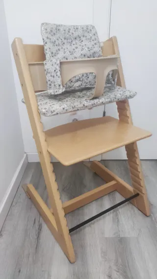Sillita que se adapta con el crecimiento de tu peque. - Fabricada en madera de haya. - Color natural original, apto para peques, sin repintar con alguna seña leve del uso normal Incluye: - Cojín estampado impermeable stokke motivo cochesitos - Baby set de retención en plástico reforzado V3 blanco - Slides extensores antivuelco en blanco para las patas traseras que evitan caidas hacia atrás. - No necesita bandeja, tiene la altura standard para cualquier mesa de comedor - Baldas graduables a medida que van creciendo Si te la envio, desmontada bien protegida Precio fijo Todo Original y seleccionado de la marca de máxima durabilid
