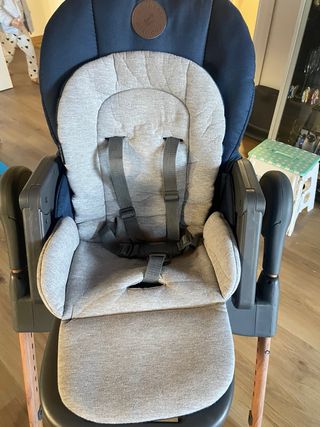 Trona evolutiva de la marca Maxicosi, ideal para acompañar el crecimiento del bebé. - Diseño moderno y funcional. - Patas con base ancha para mayor estabilidad. - Bandeja extraíble. - Altura ajustable. -Estado del producto 10/10. -Se vende porque el pequeño ya no la usa.