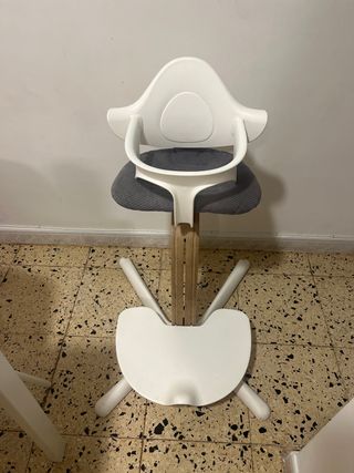 Trona evolutiva Bebeconfort Timba en color Gray Mist, ideal para bebés desde los 6 meses. - Bandeja incluida. - Soporta hasta 110 kg. - Cojín acolchado para mayor comodidad. Hecha en madera y fácil de montar. Nunca la ha usado mi bebé porque tenemos otra. La dejo al 50% menos