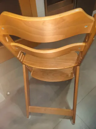 trona con todos los complementos, cojin, arneses y bandeja. color madera. con muy poco uso ya que siempre ha comido en la guarderia.